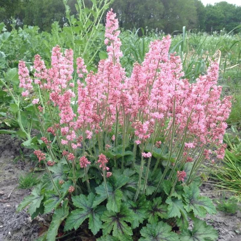 Masses of tall, airy pink flower spikes rise above mounds of lobed, dark-veined foliage in late spring and summer. A vigorous hybrid that thrives in shade to part sun and adds long-lasting color to woodland borders and containers.