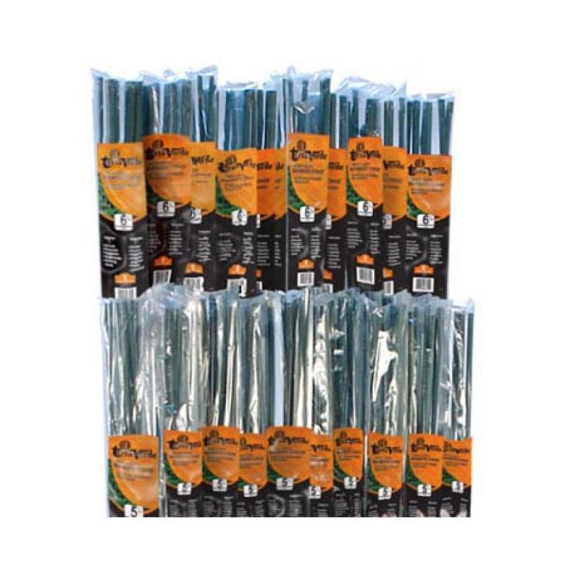 Green dyed, heavy-duty packaged bamboo stakes. No rust or corrosion. Allows maximum tree growth potential. Easy to handle. Reduces tree damage. Weatherproof.