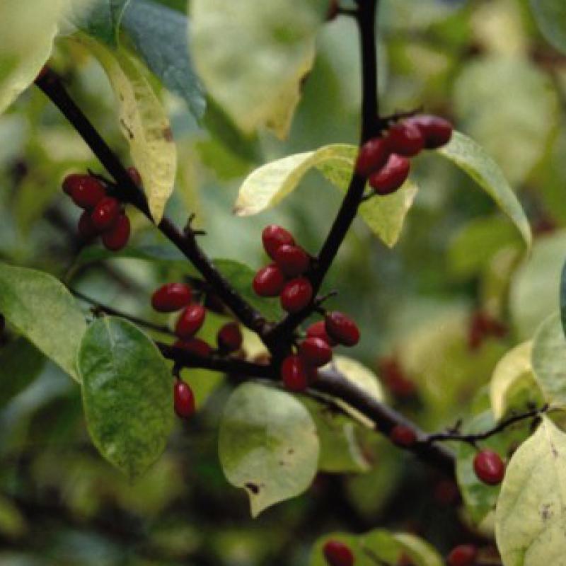 A broad, rounded, multi-stemmed shrub that is covered with fragrant yellow-green flowers in early April before the leaves emerge, providing an important early food source for nectar feeders. Birds will feed on the brilliant red fruit in late summer.
