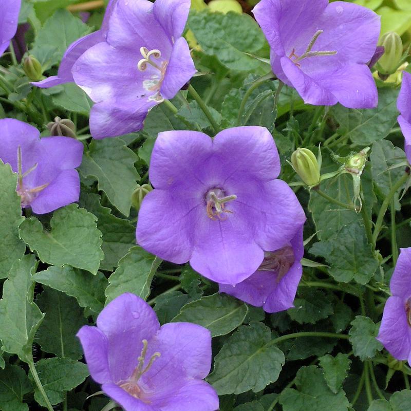 The large, violet-blue, cup-like blooms of 'Blue Clips' appear over neat mounds of delicate foliage and will remain from late June to frost with deadheading.