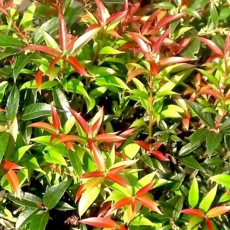 An evergreen leucothoe prized for its vivid red new growth that matures to glossy green. ‘Rejoyce’ has a dense, mounded habit and excellent tolerance for shade, making it a standout foliage shrub for foundations, woodland edges, and shaded borders.