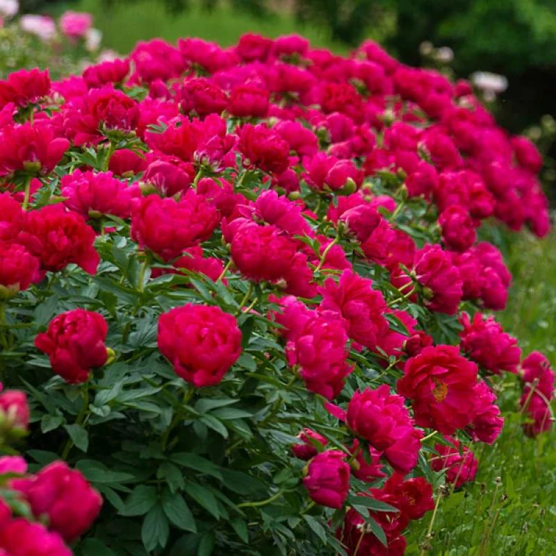 A stunning twist on a classic favorite, this peony variety features vibrant, ruby-red double blooms with a light fragrance. Excellent for cutting and a showstopper in borders or mass plantings. Long-lived and deer resistant.