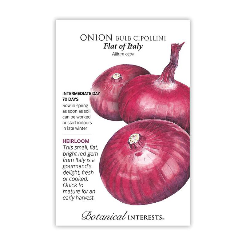 This Italian heirloom has been available to gardeners since the late 1800s but is hard to find in stores. A gourmet “cipollini” (meaning “little onion” in Italian) type, the beautiful, flattened red globes are 1" high by 2-3" in diameter.