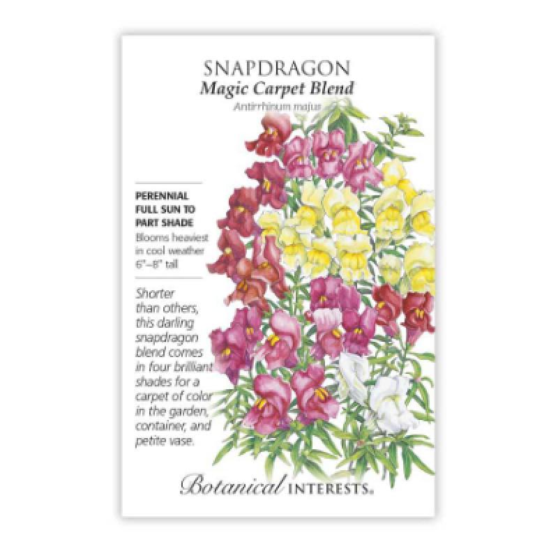 If you love “snaps” you’ll want to grow this dwarf variety of the old garden favorite. With a lovely combination of colors, it adds charm when planted with other low growing annuals in flower beds and borders.