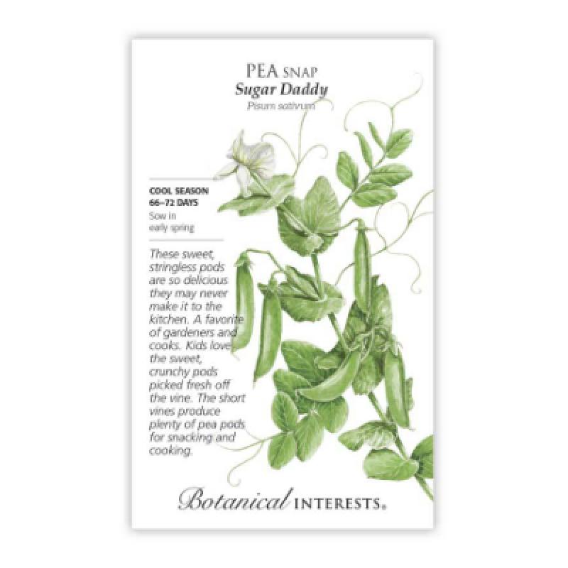 'Sugar Daddy' peas were bred by Dr. Calvin Lamborn, the innovative research director that developed the first edible-podded snap pea, 'Sugar Snap'. However, 'Sugar Daddy' has some big improvements - stringless pods, shorter vines, and more.