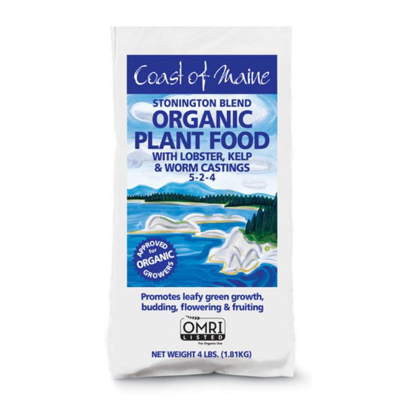 Coast of Maine Stonington Organic Plant Food (5-2-4) is an exceptional organic granular fertilizer made with lobster, crab, fish and kelp meal plus worm castings and other natural ingredients.