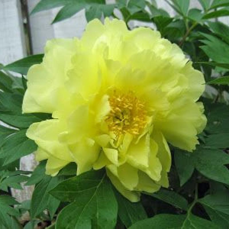 'Yumi' sports large, 5" flowers that consist of lemon yellow petals that have a translucent quality and form fully double flowers with a pleasing fragrance. The blooms will last from late May to June.
