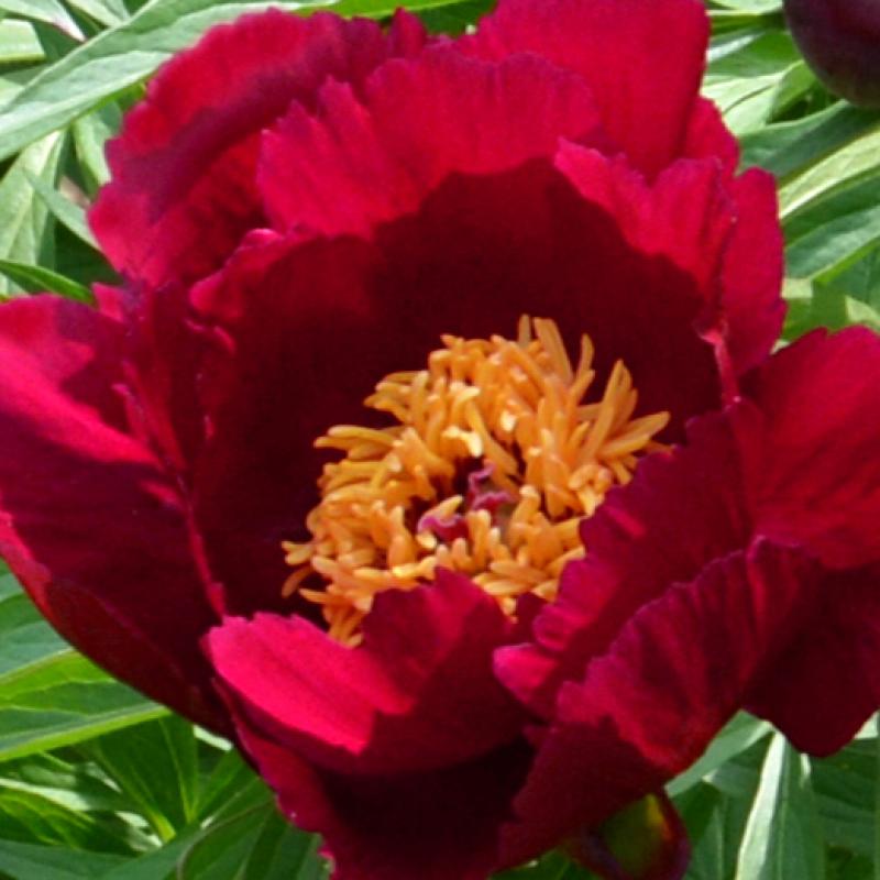 A former American Peony Society Gold Metal winner, 'Early Scout' appears early and features single, dark red flowers with golden yellow centers. This compact plant also offers finely divided leaves that are attractive until late fall.