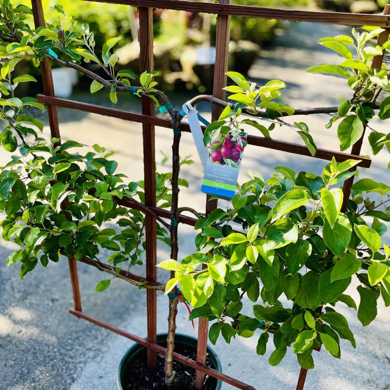 This trained Espalier form includes three varieties that will pollinate each other.