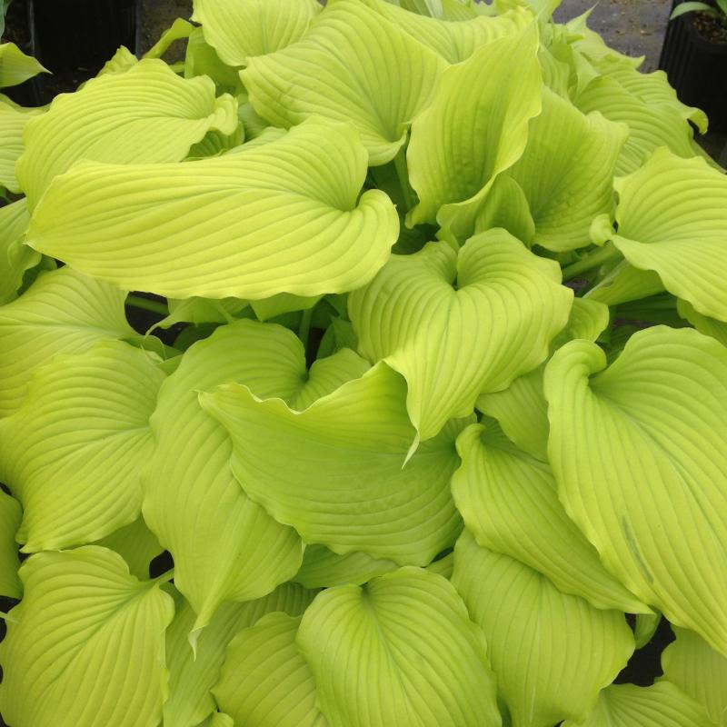 The bright yellow, pointed leaves of this variety are uniquely rippled and textured and change to yellow-green as the summer moves on. 'Dancing Queen' will form a large, wide plant with scapes of lavender flowers in July.