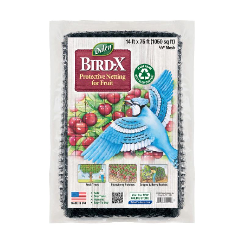 Bird-X protects fruit and berries from thieving birds and other garden pests. Bird-X is a strong and durable black 5/8" polypropylene mesh with UV inhibitors. Made in the U.S.A.