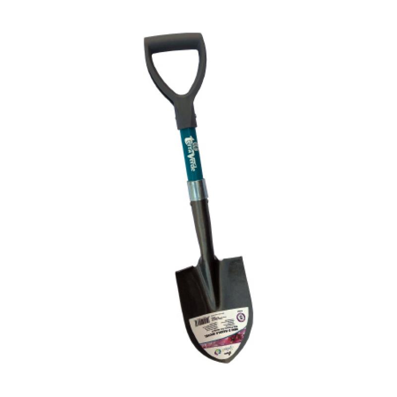 This mini D handle shovel has a carbon steel and an adjustable round steel tube handle for extra reach and leverage. PVC grip. Comes in an assortment of purple, green, and blue. 5 year limited warranty.