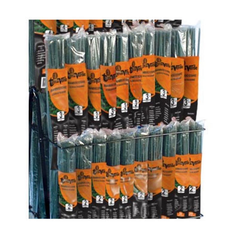 Green dyed packaged bamboo stakes.