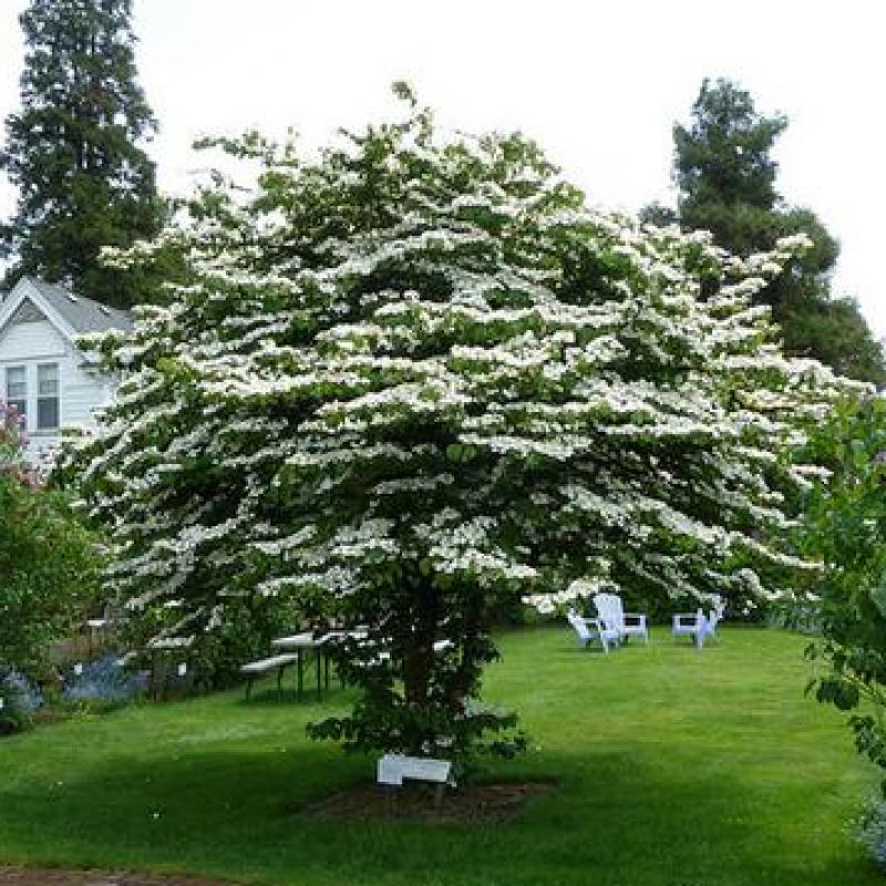 This variety produces masses of white flowers along horizontal branches in late spring. The resulting display can be absolutely outstanding, thanks to blossoms that seemingly floating on air above the foliage.