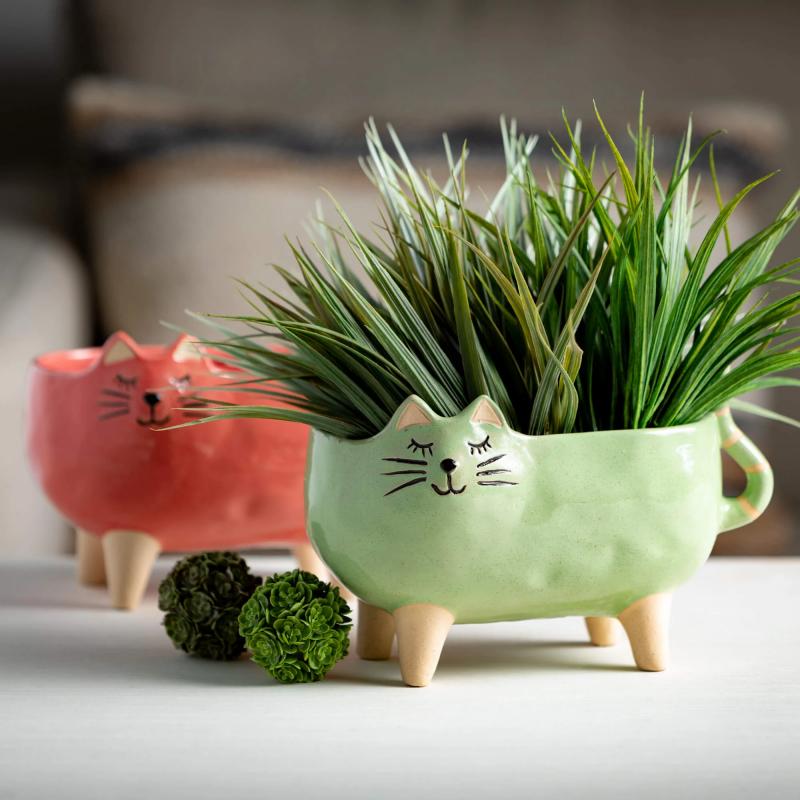 Just when you thought the purr-fect planter didn't exist…we found it for you here. This pair is eclectic and brimming with personality, just like their living feline counterparts. Ideally sized to set atop the counter (I know, I know - we don't allow cats on the counter), these are simply irresistible.