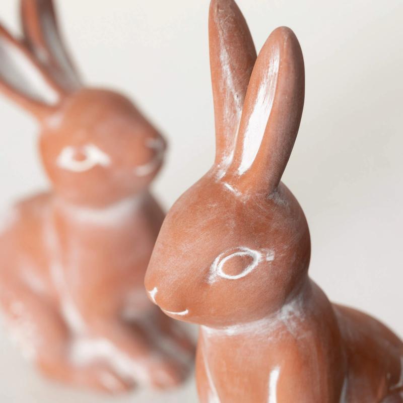 Usher in the warmer weather and the springtime with this decorative bunny figurine pair. Crafted of warm-toned terracotta and finished with whitewash, these bunnies are versatile enough for a wide variety of decor styles including traditional, farmhouse, and maximilist.