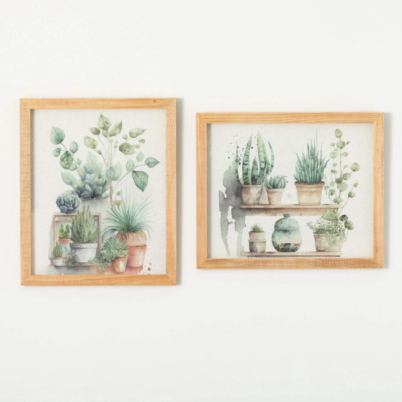 Bring the beauty of nature indoors with this exclusive Sullivans Plant Shadow Box Wall Art Set. The natural wood frames showcase a serene ivory backdrop, with delicately painted botanicals and decorative containers that add a touch of earthy elegance to any room. Display this set of two shadow boxes as a stunning focal point, or scatter them throughout your home for a cohesive, nature-inspired look.