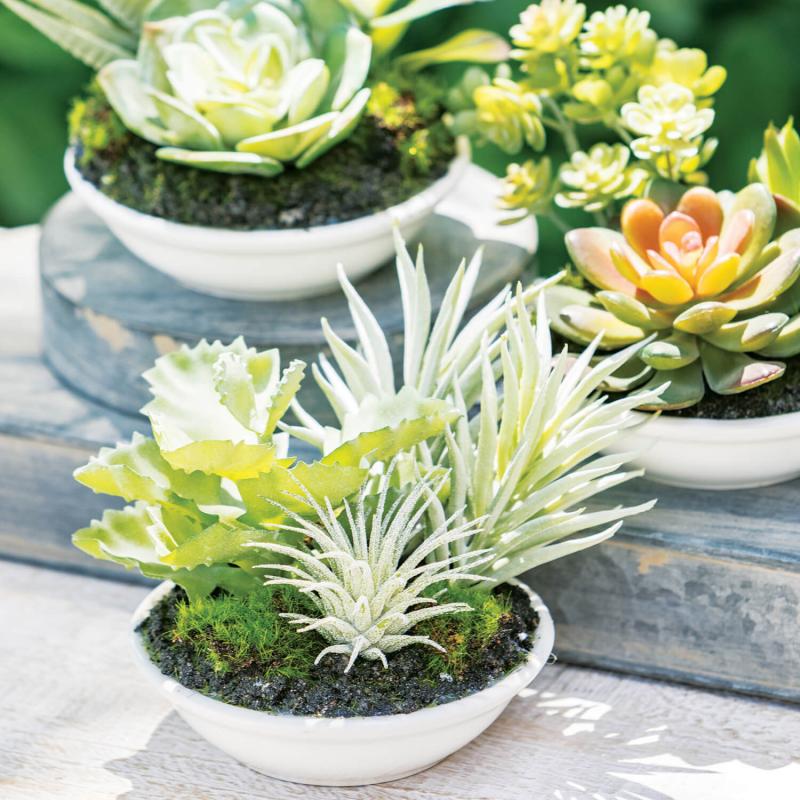 Who says big style can't come in small packages? It wasn't these adorable minis! Each garden of succulents is paired-down to mimic larger favorites, but in a manageable size that makes them a great addition!