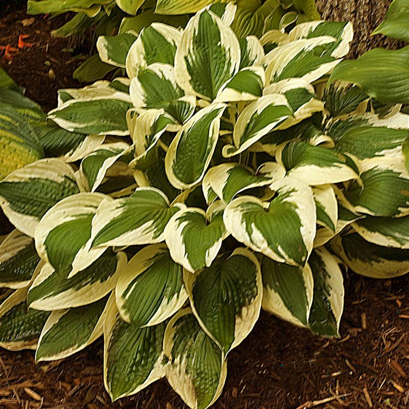 An excellent improvement on "old fashioned" variegated Hostas, 'Patriot' will grow into a medium to large-sized plant with dark green leaves, pure white margins and lavender flowers.