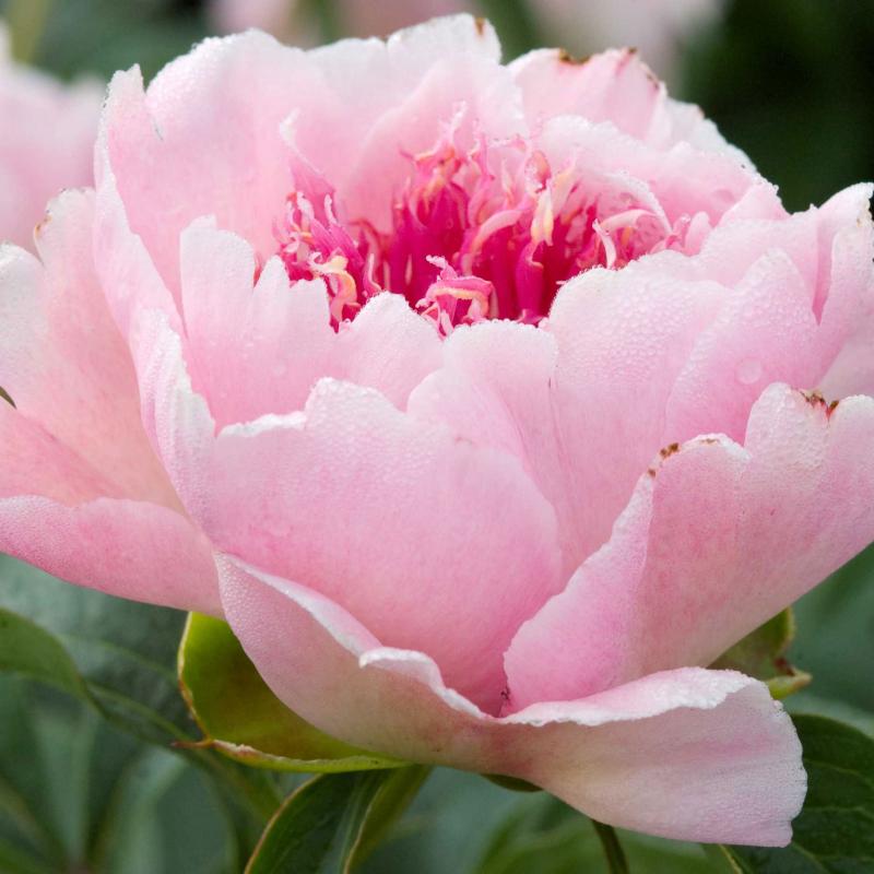 Referred to as an Anemone type flower, this variety offers 5-7" single blossoms consisting of light pink petals that surround a deep rose and yellow fringed center. A mid-season bloomer, 'Do Tell' produces strong stems and deep emerald green foliage.