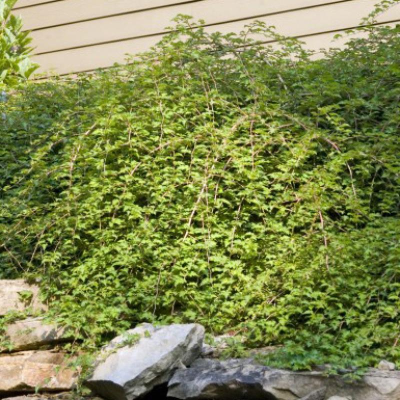 This excellent, fast-growing groundcover features bronze new growth that matures to small, finely lobed foliage. Great fall color and an interesting branching habit are also traits of this tough plant.