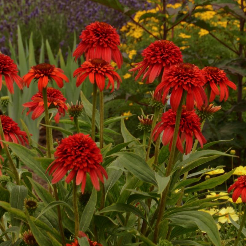 An exciting double Coneflower, this variety is the very first in tropical, fiery orange shades. 'Hot Papaya' blooms in late July to September with flowers that are held on thick, well-branched maroon stems.