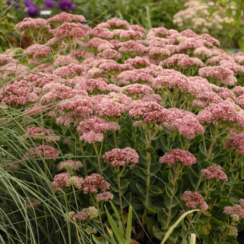 An upright, robust grower without the floppy syndrome, 'Autumn Fire' features bold clusters of closely packed, rosy-pink flowers in August which age to salmon-bronze with coppery-red shades. The light gray-green foliage will remain drought tolerant.