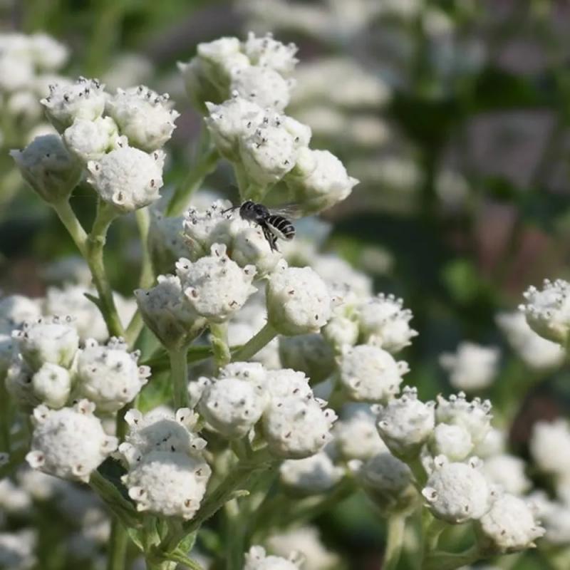 A sturdy native perennial with tight clusters of small, white, button-like flowers atop tall, upright stems. Blooms from early to late summer and is excellent for pollinators and cut flowers.