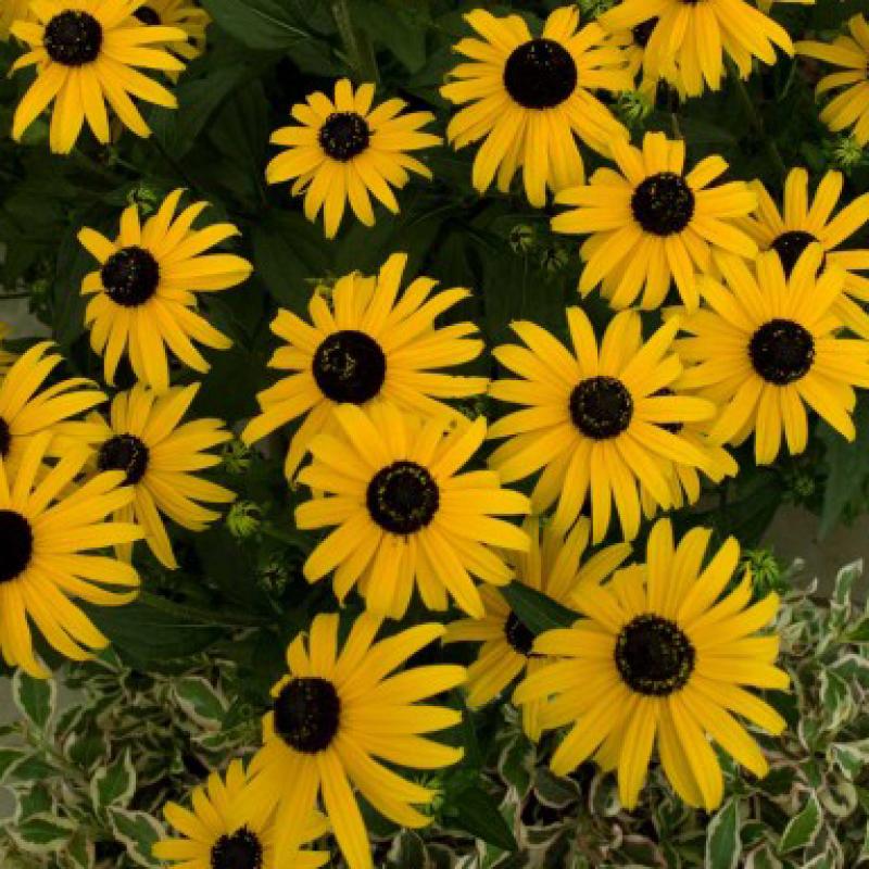An early blooming improvement on a garden favorite, the blooms of 'Early Bird Gold' begin in July and continue until frost on vigorous plants with very dark leaves.