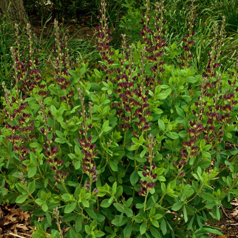 Very floriferous, long-blooming, robust and vigorous, this variety features deep chocolatey-purple flowers with a lemon-yellow keel that fades to violet-purple in June. The flower spikes rise high above clean, healthy blue-green foliage.