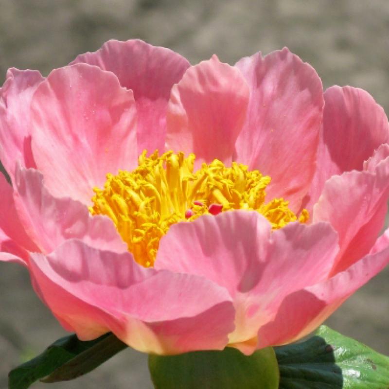 A luminous single peony with soft coral-pink petals that glow in the garden, accented by a bright golden-yellow center. Blooms early in the peony season and brings a light, airy elegance to borders. Vigorous, sturdy, and excellent for cutting, it adds warm color and refined texture.