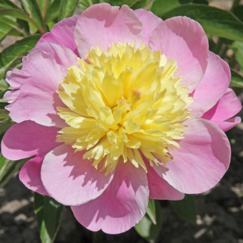 A cheerful, bicolor peony with soft rose-pink outer petals that frame a full, creamy yellow center. The Japanese-style blooms create a warm, sunlit glow in early summer borders. Vigorous, reliable, and excellent for cutting, this variety adds brightness and texture to any peony collection.