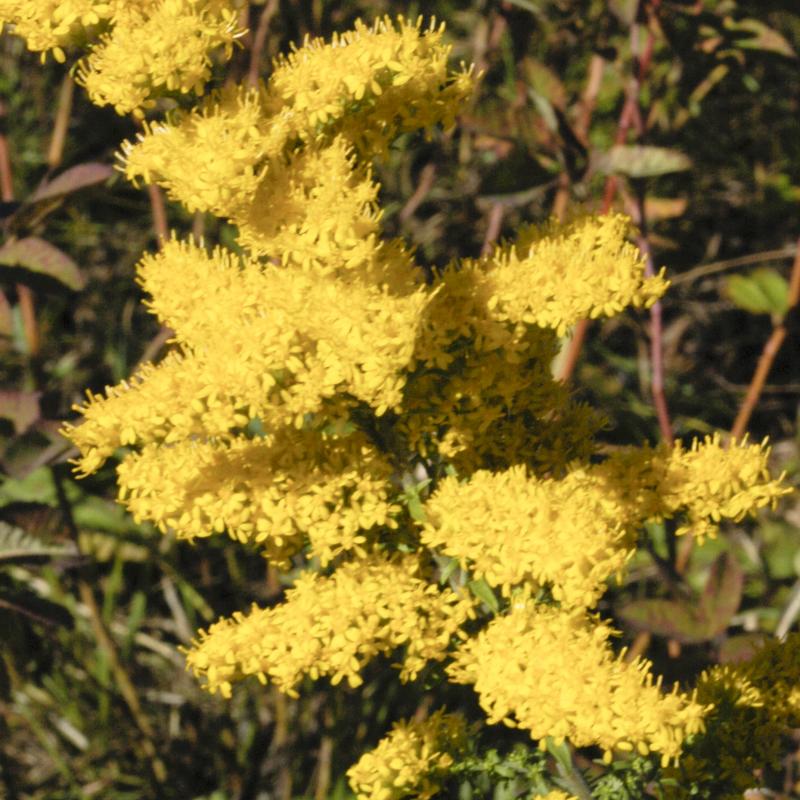 A compact, drought-tolerant native goldenrod with airy clusters of bright yellow flowers atop gray-green foliage. Blooms late in the season, supporting pollinators and beneficial insects when few other plants are flowering. Excellent for naturalizing and dry sites.
