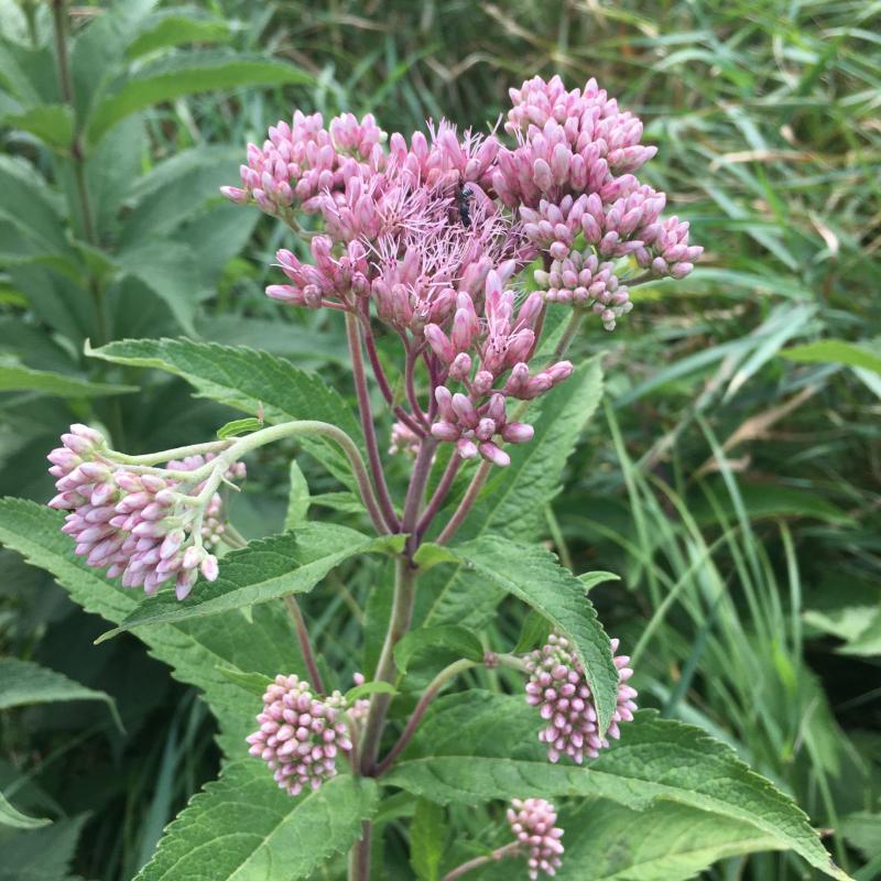 A tall native perennial with dome-shaped clusters of pinkish-purple flowers that bloom from midsummer into fall. A vital nectar source for butterflies and bees, it thrives in moist soils and naturalized settings.