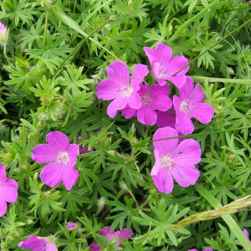 A hardy, low-growing perennial with finely cut foliage and magenta-pink to purplish blooms that appear from late spring into summer. Its mounding habit makes it an excellent groundcover or border edging. Foliage turns red in fall, adding seasonal interest.