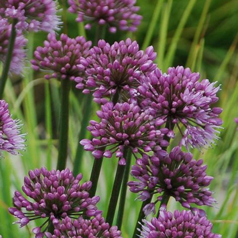Thin dark-green leaves provide a dramatic backdrop for lavender-purple flower clusters on strong, dark stems. Spent flowers persist for winter interest, but are near-sterile, setting very little seed. Pollinators love this plant!