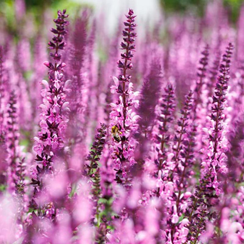 Compact and floriferous, this variety produces dense spikes of rosy pink flowers above aromatic foliage. Blooms heavily in early summer with repeat flushes when deadheaded. A magnet for pollinators and a standout in sunny borders.
