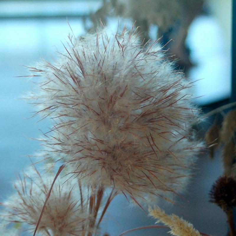 Tall, clump-forming native grass with striking fluffy, silvery-white seed heads in fall. Prefers moist soils but adapts to drier sites. Adds texture and movement to naturalistic gardens, meadows, and wetland edges.