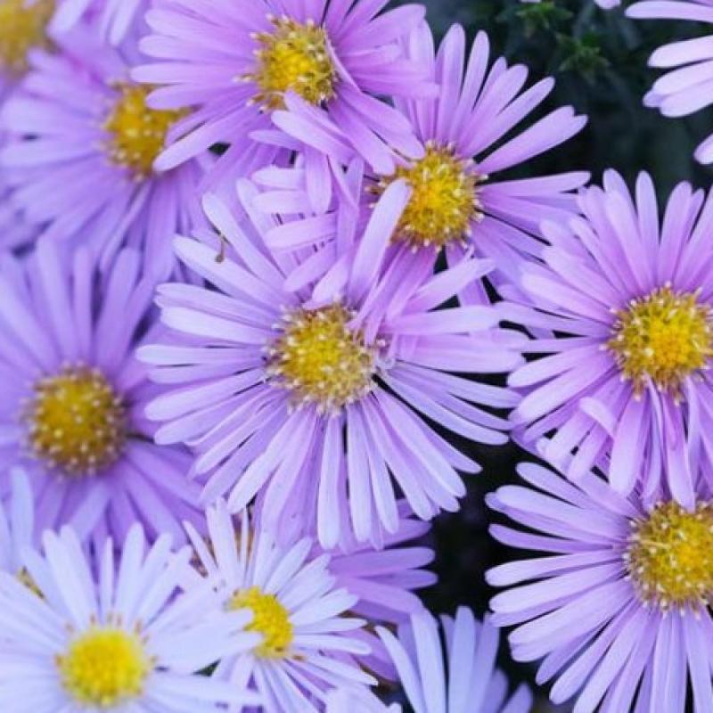 A classic fall-blooming native aster with masses of lavender flowers and bright yellow centers. Excellent for borders, pollinator gardens, and extending color late into the season.