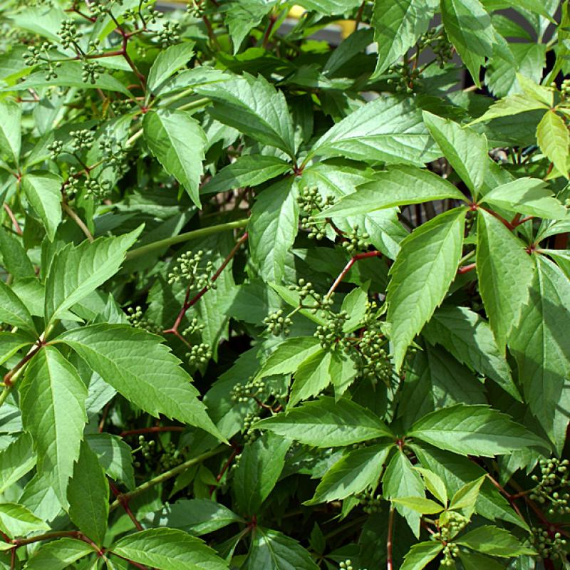 A fast-growing vine that clings to walls and other surfaces for a quick cover, the dark-green leaves of this plant turn brilliant orange-red in fall and make a good groundcover.