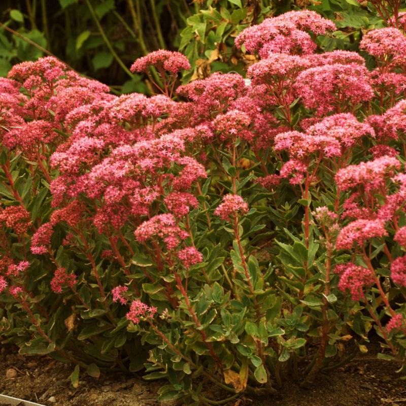 'Carl' produces very bright lavender-pink flowers on strong stems during July and August amid succulent foliage that is heavily gray-tinged and forms a dense mound.