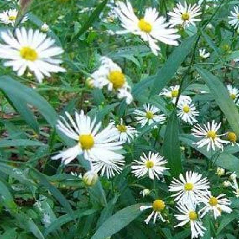 This upright plant features gray-green foliage that is topped in late summer with white daisy-like flowers. Unlike asters, this selection does not require staking and is not prone to powdery mildew.