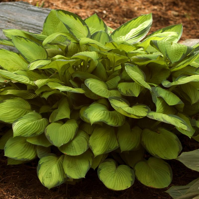 Light chartreuse leaves with gold highlights and deep green edges give rise to lavender flowers that will contrast nicely with the foliage of this medium sized plant.