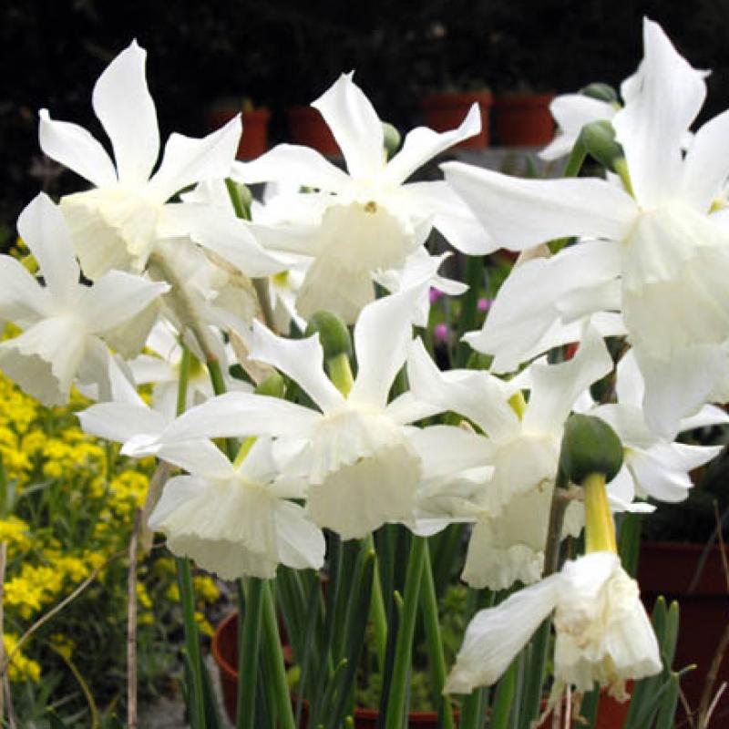 Triandrus Narcissi have two or more pendent or suspended flowers with the outer petals reflexed (pointing behind the cup).