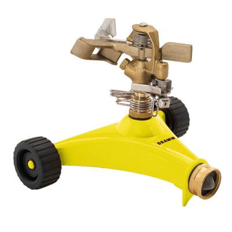 Available in a variety of fun colors, the ColorStorm Impulse Sprinkler features a sturdy metal, wheeled base and can be adjusted for desired diffusion and distance of water spray.