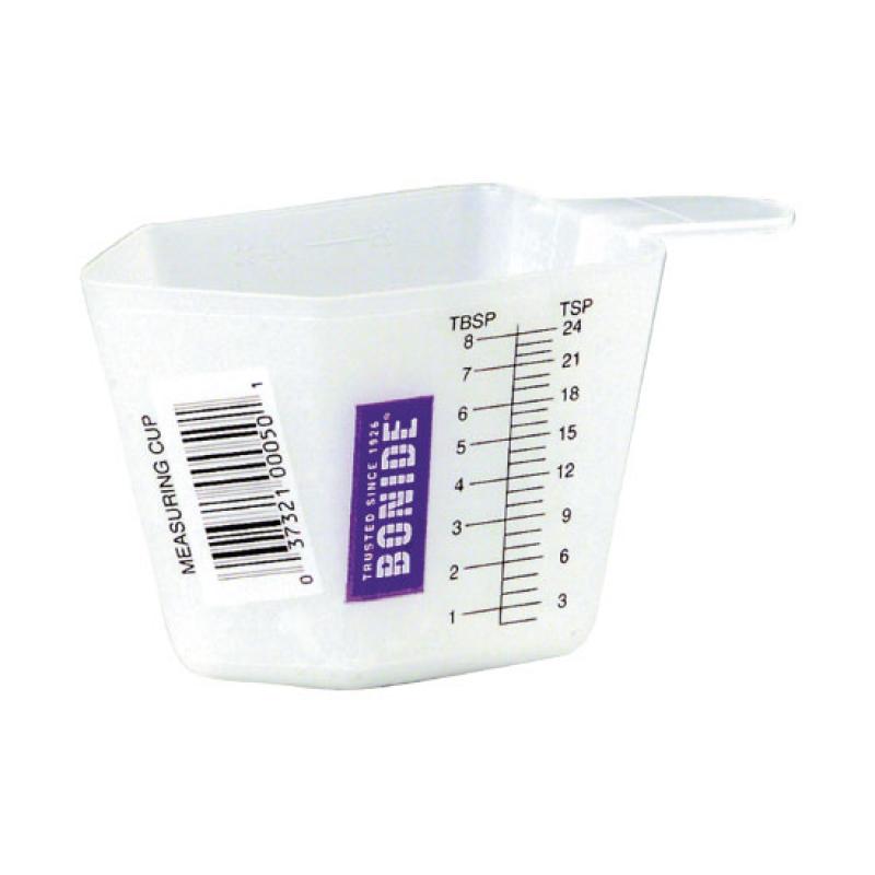 These handy 4 oz cups calibrated for teaspoons, tablespoons and ounces provide a measuring device other than kitchen utensils.