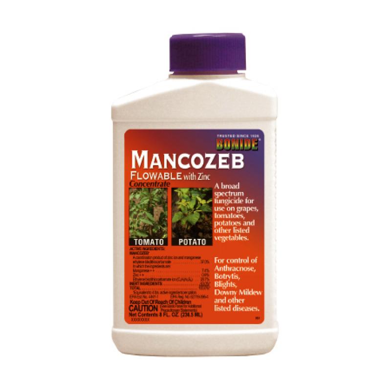 Mancozeb Flowable With Zinc is a broad spectrum fungicide for use on a wide variety of vegetables and ornamentals. Controls leaf spot, downy mildew, blights, anthracnose, botrytis and other listed diseases.