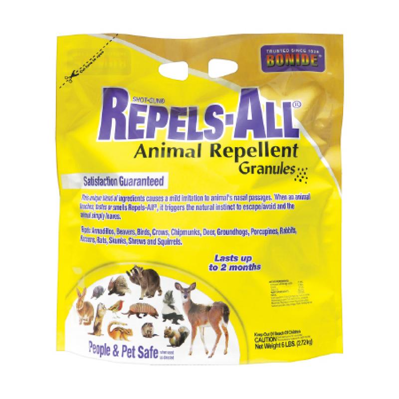Repel nuisance animals including skunks, raccoons, squirrels, chipmunks, and many more from ornamental gardens and planting areas. Repels through smell, taste, and irritation of eyes and nose. The formula will not harm animals.