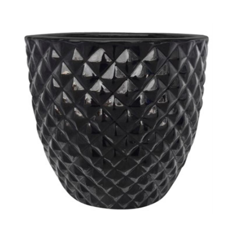 Planter - MCarr Diamond Egg Glossy Black 11.6"