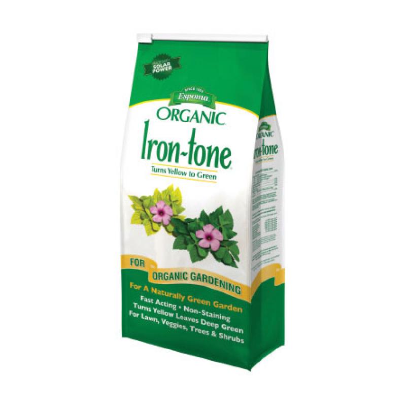 Turns yellow to green for a naturally green garden. Will not stain concrete surfaces. For lawn, veggies, trees and shrubs.